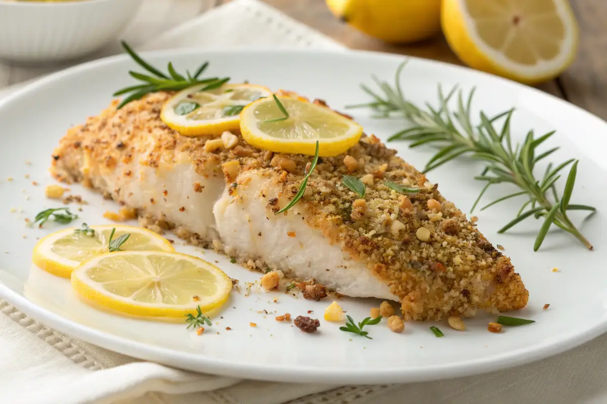- Fresh Lemon: Squeeze fresh lemon juice over the fish immediately after it comes out of the oven to brighten the flavors and cut through the richness of the nuts.