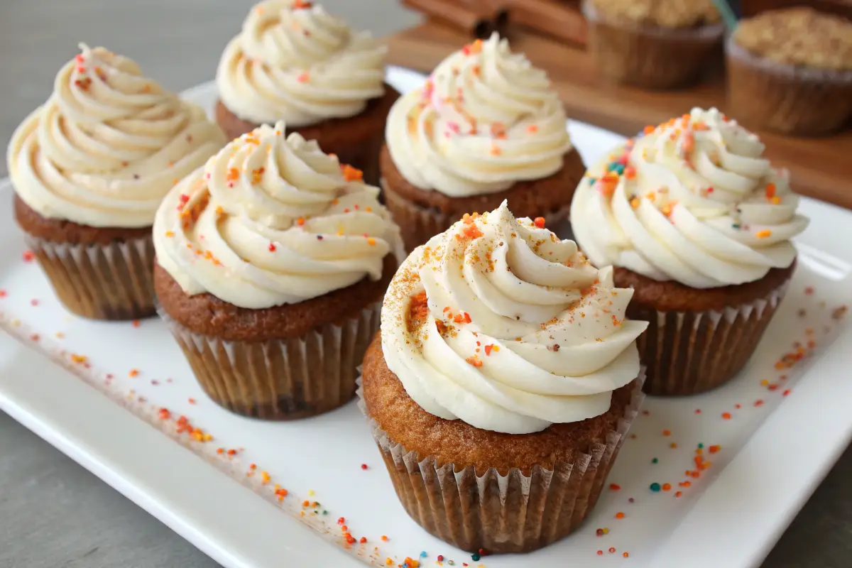 What complements a spiced, frosted cupcake better than a thoughtfully chosen companion? I love imagining how these treats fit into different moments, from casual snacks to celebratory spreads. Visualize the golden hue of these cupcakes against a rustic wooden board or pastel spring platter.