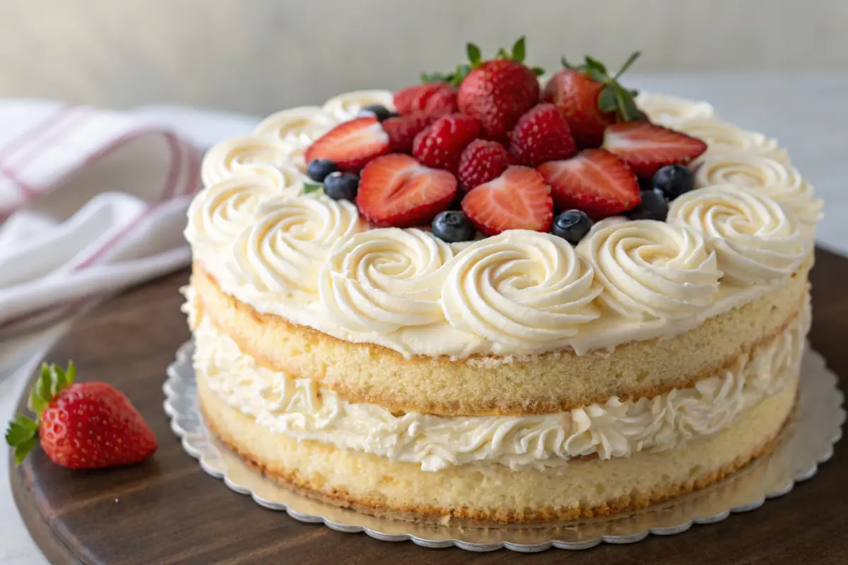 What makes this recipe special is its delicate balance: the cake stays moist for days, the whipped cream holds its shape beautifully, and those berries add just the right pop of freshness against the sweet vanilla backdrop. It’s dessert therapy in edible form.