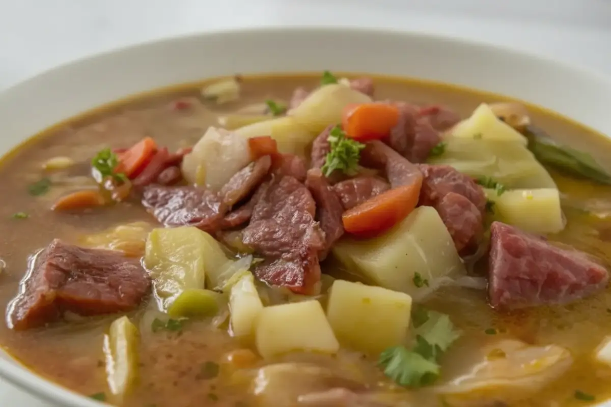The Vegetarian Swap Want to keep the spirit of the dish without the meat? Swap the corned beef for smoked tofu or tempeh marinated in soy sauce and liquid smoke. Use a robust vegetable broth and add white beans for protein. It won’t taste exactly the same, but it captures that smoky, savory essence we all love.