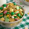 Presentation matters, even for a snack mix. I love serving this in clear glass bowls so everyone can see the colorful candies peeking through. It looks beautiful on a dessert table alongside a slice of St Patricks Day cake. You can also portion them into small cellophane bags tied with green ribbon for party favors.
