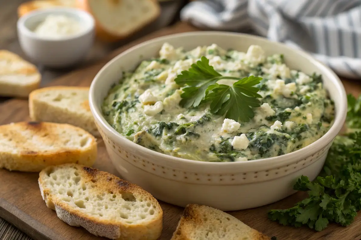 While this dip is an indulgent treat, it does offer some nutritional perks. Spinach is packed with iron, vitamins A and C, and antioxidants. Artichokes provide fiber and support digestive health. Using Greek yogurt in place of some sour cream can boost protein content. Enjoyed in moderation, this dip can be part of a balanced lifestyle.