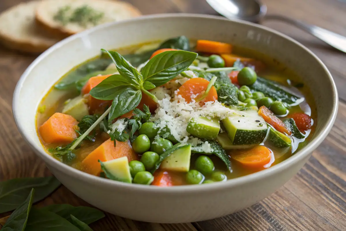 I think of my grandmother every time I make this soup, though she never called it “Spring Minestrone.” To her, it was simply “the soup with whatever is green,” a humble dish that appeared on our table whenever the garden started to wake up after winter. She would send me out to snip fresh herbs with small, careful hands, teaching me that cooking is not just about following steps, but about paying attention to the world around you.