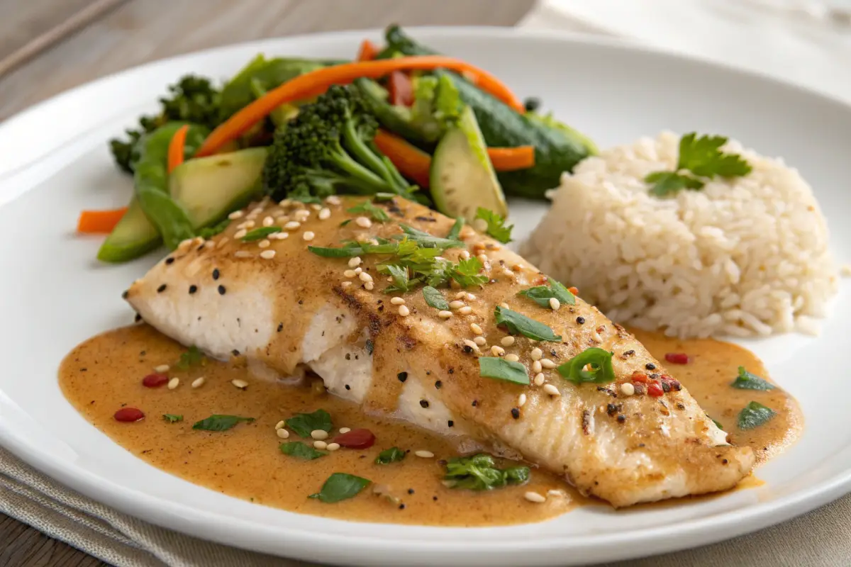 Serve the fish over a bed of fluffy jasmine rice or cauliflower rice to soak up every drop of that savory peanut glaze. The neutral grains balance the bold sauce and provide a comforting base for the flaky white fish.